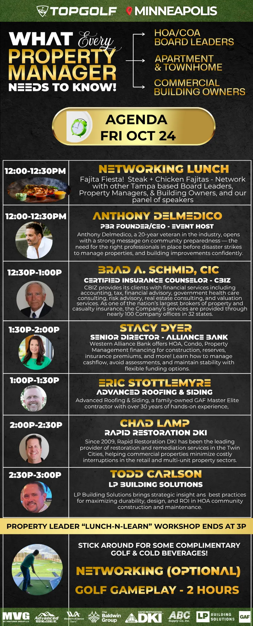 Full Access to our Speakers and "Board Leader & Property Manager" Curriculum in the Signature Room on FRI OCT 24 (12P-3P) at Top Golf in Minneapolis, MN.